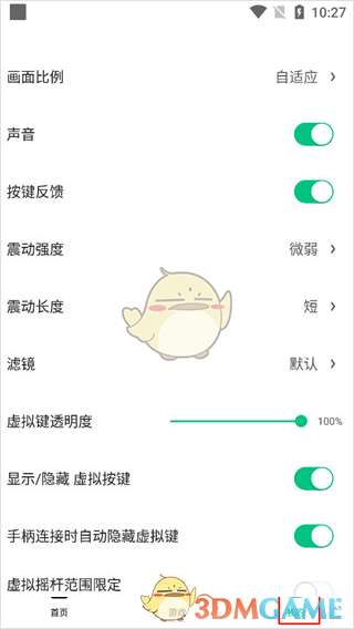 2、自定义调节画面比例、声音、震动强度、显示或隐藏虚拟按键等等;
