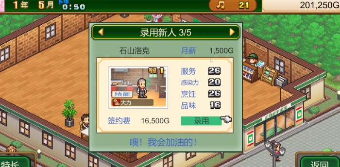 此外,游戏中还有特殊员工招聘设定,当店铺达成一定的营业额或者是触发“完美服务”等特殊成就时,就会解锁特殊店员。当然特殊店员对于薪资要求一般是比较高的,所以为了避免直接加薪,大家可以通过刷好感度的方式来控制这个招聘成本。还需要特别注意的是,大家记得在招聘之前完成存档,以避免浪费游戏资源。