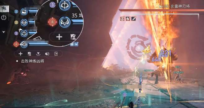 接着玩家可以找第二个boss,在找第二个boss的过程中,如果遇到剑气就可以选择直接规避。这个boss的机制相对比较复杂,起手就会释放三道剑气,玩家就需要迅速的闪避。视觉在拉远之后,boss还会释放三次地板伤害,玩家需要依次躲避红圈的边缘,还有圈外大跳。三次落地重砸主仇恨,玩家可以远程远离主目标,然后及时的闪避。看到boss举起刀,然后全员靠近时,地板点亮之后就可以直接撤离到小圈的后方,然后躲避剑气。