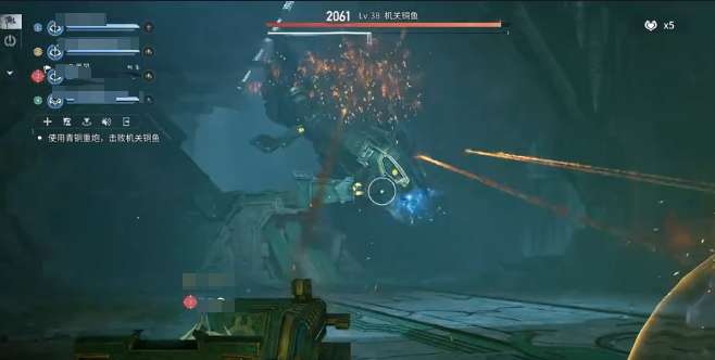 副本前期的精英怪难度相对比较低,可以迅速的清理。第一个boss就是机关铜鱼,没有属性弱点。需要靠场景炮击作战,炮击支持射击,还有开盾。全员进场之后就可以立刻启动无限子弹,可以持续的输出。这一个boss就有三大核心机制,例如扫尾就会触发地板伤害。选择闪避或者跳跃是没有作用的,必须要开启炮击,护盾抵抗。护盾只能够抵挡一次,激光出现之前集火触发之后就应该立刻离开,炮击,躲闪。等火焰消失之后,然后清理小怪,打败之后开启宝箱就能够领取紫色的装备。