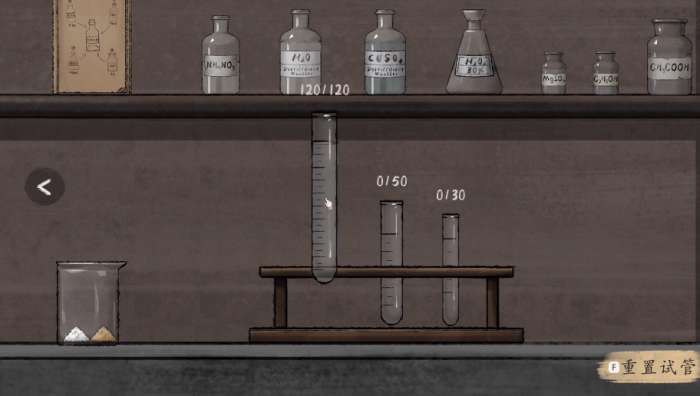 在第三个案件中,玩家会进入到工厂,在工厂这里角色意外身亡,但有其他的证据显示角色是被其他成员杀害的,为了可以找到真正的凶手,玩家需要在场景里不断搜索,同时还需要去配置一些可以显示出血迹的试剂,这时候玩家可以打开试剂台,可以看到在左侧会有砝码,上面还会有很多不同的药品,可以在右侧放置最小的砝码,然后按照游戏里提示的顺序,把药品放到左侧,然后按照要求的顺序倒入进去,所有的固体放置进去之后,就可以用试管调配液体,按照特定的重量调配完成之后,就可以获得显示出血迹的试剂。