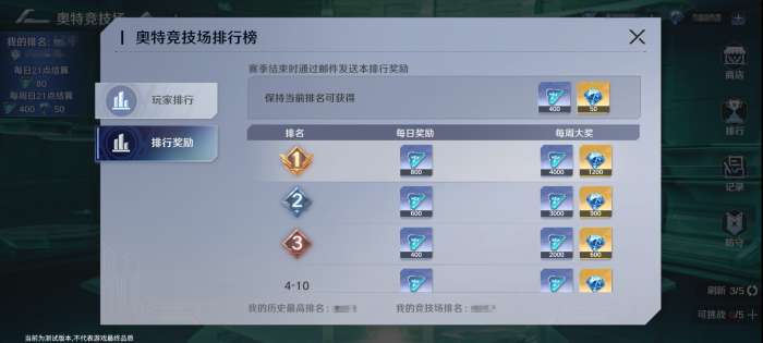 奥特竞技场是常规的PVP竞技场玩法,玩家可挑战其他玩家的阵容。每日将根据玩家排名结算日、周排行奖励,且当玩家突破历史最高排名时,可一次性领取大量奖励。