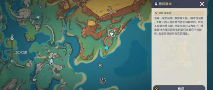1、在地图上定位至涌流地的传送点,并利用其进行瞬间移动。