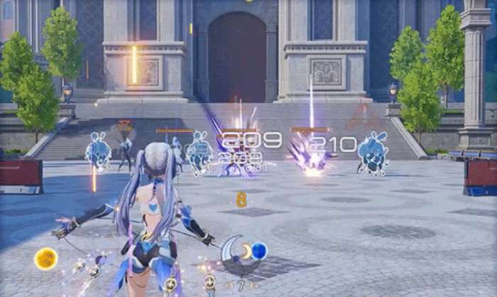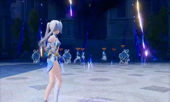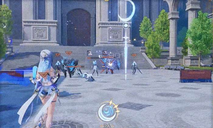 普攻名为“圆缺有律”,常规形态下默认搭载扩散型武器「灵轨月轮」。射击命中目标后,将向周围区域投射多柄飞剑,造成范围动能伤害,并同步积攒“月刻值”。长按普攻可切换至集束形态,此时射击将触发“衔刃”效果——发射一枚自动追踪敌方单位的飞剑,命中后同样造成动能伤害并获取月刻值。