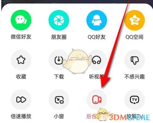 2、当“后台播音”图标处于选中红色状态时即表示此时视频切换至后台时仍然会播放声音,此时点击该图标。