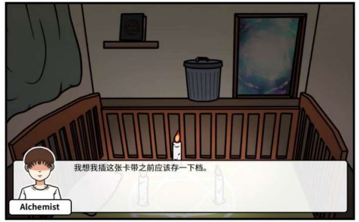 画中人成功回家,将芯片放入后再次进入。进入房间从画中人得到培育世界的卡带