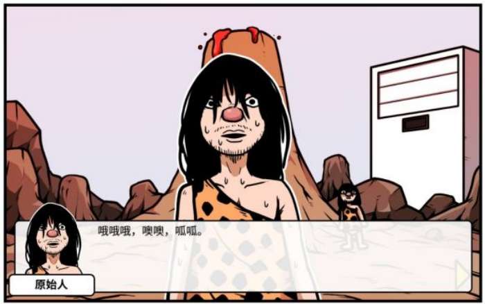 切换场景后可以发现一座火山,一个原始人和一个巨型空调。原始人说着听不懂的话,而火山中有一个卡带。