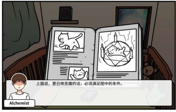 进入培育世界,养成目标是婴儿床上的卡带,书架上的书写明需要3只蜡烛,画上法阵以及献上祭品。