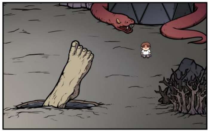 打败蝙蝠后在颠倒城探索,来到楼梯间后蝙蝠尝试将二人带到楼上失败了。