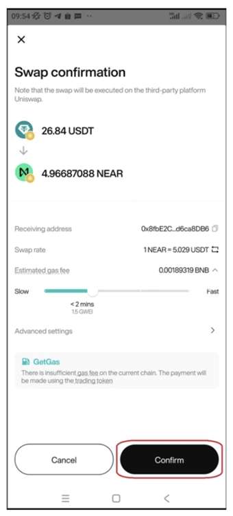 第 3 步:确认交易费用并完成兑换