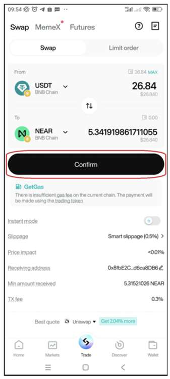完成后,Bitget Wallet 会自动计算并显示您在交易后能收到的代币数量。确保再次检查此信息以避免错误。