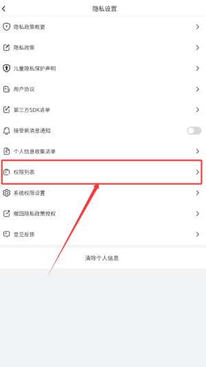 3、然后在设置菜单中滑动查找“权限管理”选项,进入后即可看到所有已授权和未授权的权限列表。
