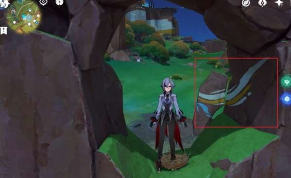 3、解谜需要站于两侧石碑的洞中,之后将视角转向解谜之处。