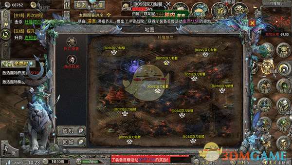 5、右上角的地图上分布有各个地区,点击即可自动前往,好了传奇游戏玩法都是差不多的,大家开始继续冒险吧。