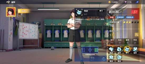 新田瞬在队长小翼王牌对决中的基础评分为174,属于同品质球员中的主流水准。他在射门、抢点、盘带和争顶四项关键属性上表现突出,尤其是抢点和争顶均达到21点,这使得他在前场的高空球争夺和二点球控制方面具备明显优势。虽然他的抢球能力相对较弱,但作为影锋本就不以防守见长,合理安排站位即可规避短板,充分发挥其进攻端的威胁。