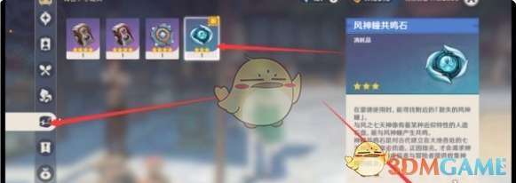 3、继而,打开你的行囊,转入小型物品分类,寻得风神瞳共鸣石并予以装备。