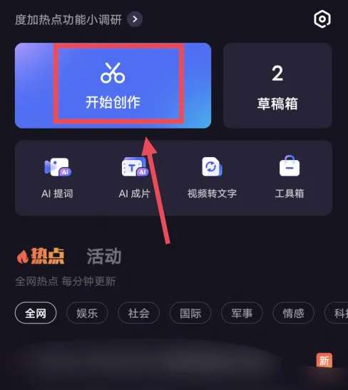 度加剪辑怎么改变视频音色?手机打开度加剪辑,点击“开始创作”,打开手机相册,点击一个视频,再点击“开始剪辑”,在剪辑页面,找到选项,点击“变声”,在变声页面,点击一个声音,设置变声。