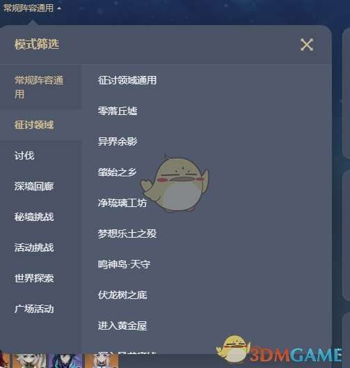 1、首先我们前往阵容广场,选择常规阵容下方的角色和模式进行筛选;