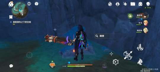 跟随任务指引,前往瀑布底下,打碎石块后调查夸恩因的遗体