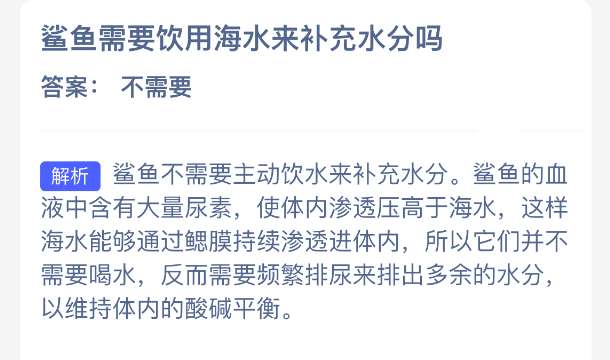 以上就是鲨鱼需要饮用海水来补充水分吗?神奇海洋今天答案最新2026年1月8日分享,更多相关攻略内容,请点击关注pk游戏网更新!