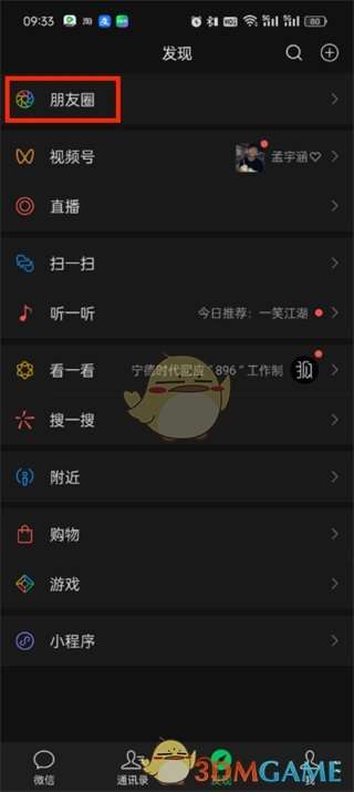 2、然后在发现的页面中可以看到有很多的功能,在这里我们点击【朋友圈】;