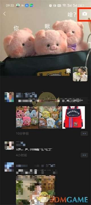 3、接着来到朋友圈的页面中可以看到最新发布的朋友圈,我们点击右上角的【相机图标】或者是长按;