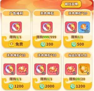 1. 除去第一个200仙玉=1天命唤石,千万不要买!依次500-1200-2000买起是最划算的