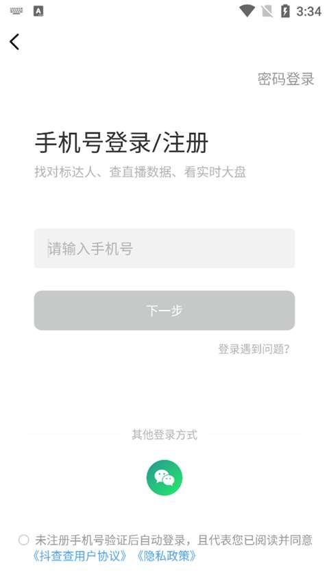 1、打开抖查查官方版软件,先进行登录