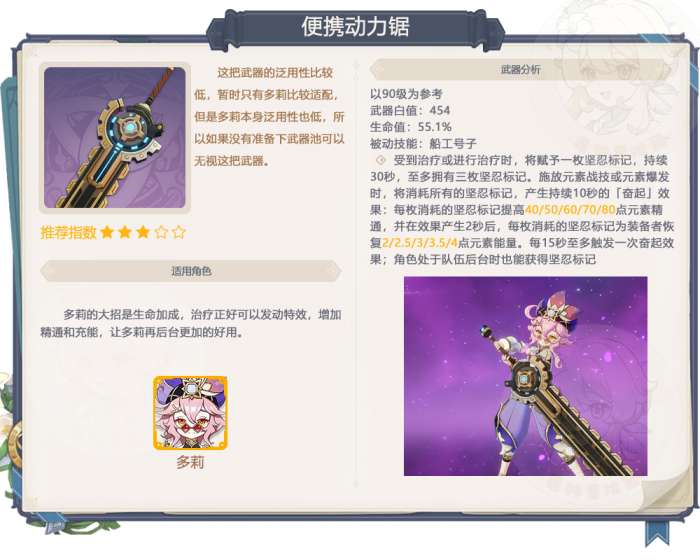 这把武器的泛用性比较低,暂时只有多莉比较适配,但是多莉本身泛用性也低,所以如果没有准备下武器池可以无视这把武器
