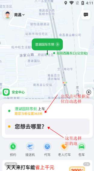 1、用户需要进入首页,在首页上快速定位,并且输入你想去的目的地。