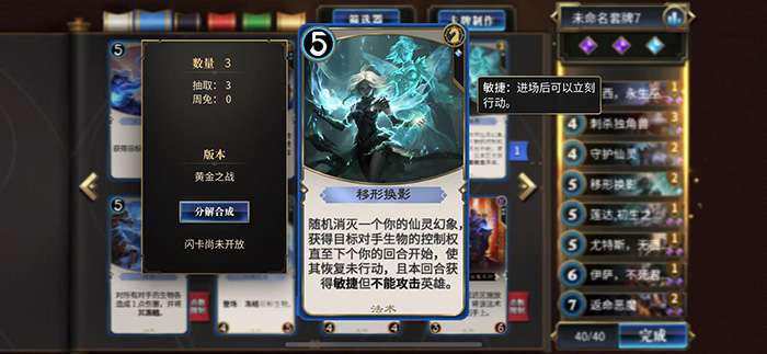2、移形换影,看上去挺鸡肋的但实际上在对面场面占优能有效解场,配合上面的基础仙灵和后面补强用的守护仙灵,可以解决2个地方生物,甚至在破盾打脸,补乌鸦吸血也有用。