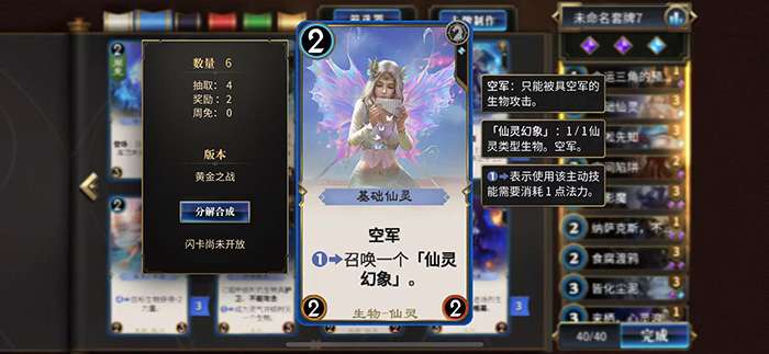 1、基础仙灵,这张卡是弥补前期节奏,争取铺场,以及配合后面的解场卡移形换影,而且可以打衍生让乌鸦吸饱血用,返命恶魔也能把她再次召唤出来,变成4-3能生小怪的中形生物,因此功能用途比较多。