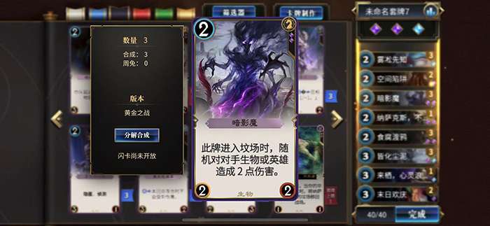 5、特别说下暗影魔,随机性比较大,好处是可以配合青蛙或者皆化尘泥使用,丢进坟场不可惜,也可以配合伊萨复活造成高额伤害。前期2费直接下也不亏。