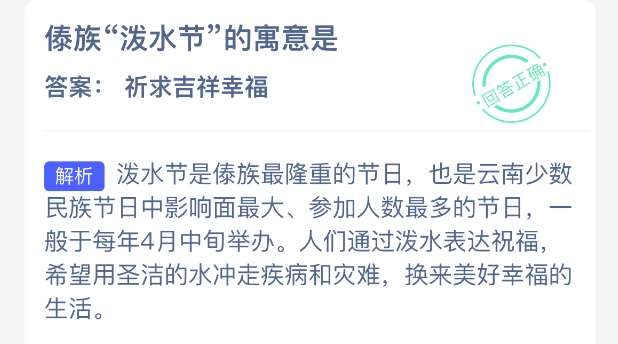以上就是傣族“泼水节”的寓意是?支付宝蚂蚁新村最新答案2026年1月3日,更多精彩内容,请点击关注pk游戏网更新!