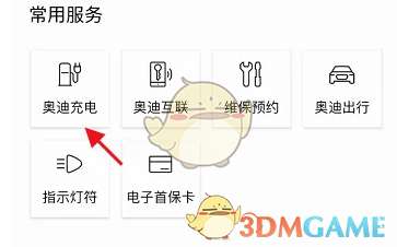 3、进入用车找到常用服务,点击常用服务下方的奥迪充电进入