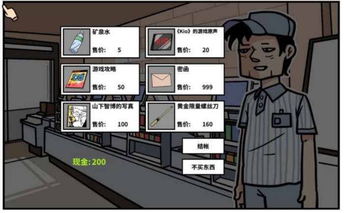 选择醒悟,离开“咖啡厅”,游戏继续进行来到便利店买东西,这里是影响后续剧情的关键地方,每一种商品都与剧情线路选择或成就有关(密函除外)。
