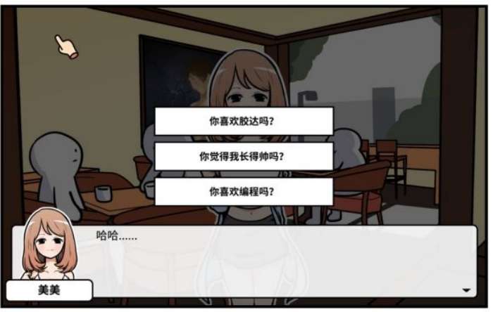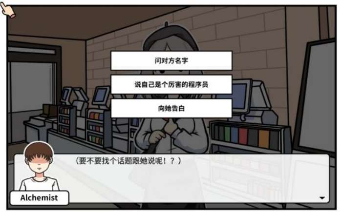 与她对视一会后,男主想主动搭讪,打破尴尬局面。这里进入第二个BE抉择
