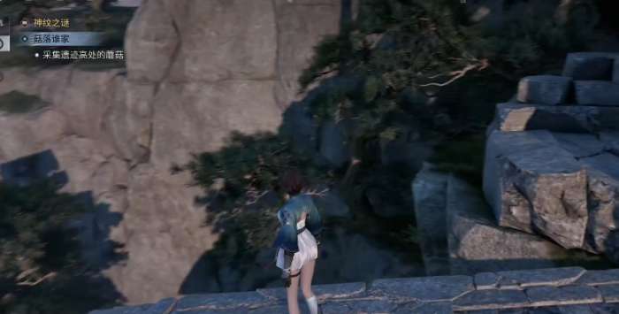 玩家跟随着主线走到了这个任务之后,就可以看到这边任务会提示采集遗迹高处的蘑菇。盯着屏幕看了半天,甚至以为是游戏出了bug。这边的悬崖又陡峭又滑,抬头望上去,目标就在悬崖的顶端,连一个可以落脚的地方都没有,该如何上去呢?开始只能够尝试着硬着头皮上去,但是根本就没有作用,后来才知道这中间肯定会有一些技巧。