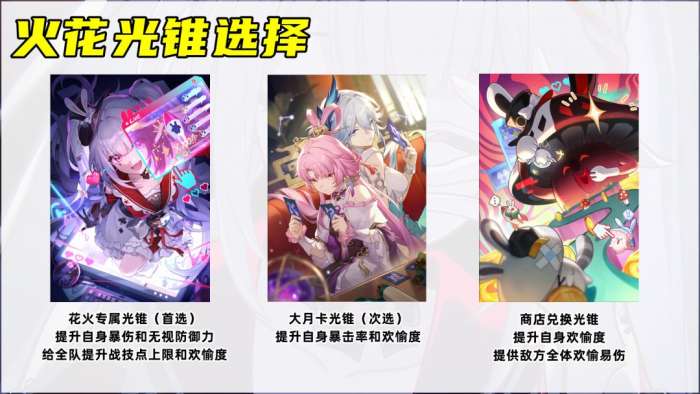 综合来看,如果想给火花提升的话,推荐先抽专属光锥,然后再抽星魂(2魂提升还不错)。