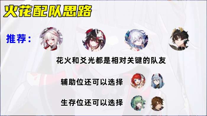 其中提供欢愉加成的爻光,以及回复战技点的花火都是相对关键的队友。