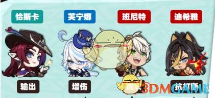 3、输出手法:芙宁娜EQ→迪希雅E→班尼特EQ→恰斯卡E后输出(有Q开Q)