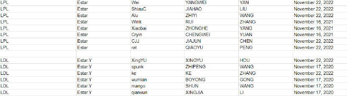 LPL新队也是最神秘的战队eStar新赛季大名单终于出来了!在LPL官方同步于全球的合同数据库中,于本赛季才加入LPL的Estar战队名单正式曝光。