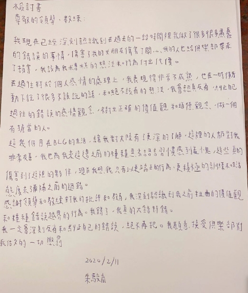 电竞圈开年大戏终于以FOFO手写道歉告一段落。2月11日晚,BLG电子竞技俱乐部发布公告,就近日网曝的中单选手FOFO不恰当言论的处理结果:扣罚半年工资。