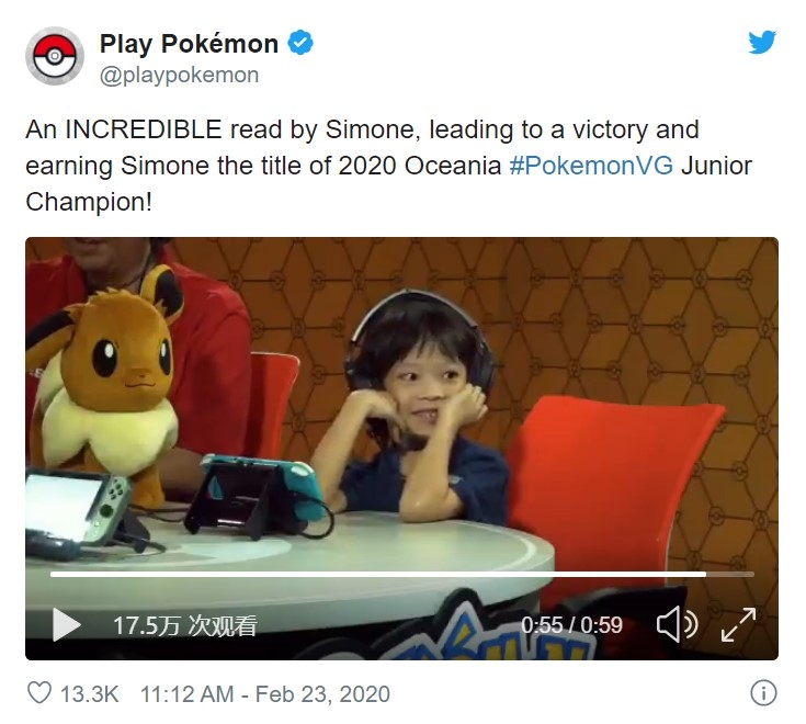 比赛官方的推特账号,捕捉到了Simone Lim艰难战胜年长对手Justin Miranda-Radbord的最后时刻,后者是2019年的宝可梦大洋洲青少年锦标赛卫冕冠军。 根据赛事评论员的说法,这也是Simone Lim小朋友的第一个赛季,也是她在两个地区锦标赛中获胜后的第一个重要赛事。