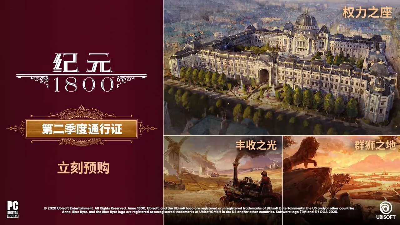 《纪元1800》第二季度通行证以及《纪元1800》完整版也将上架育碧商城。《纪元1800》完整版包含游戏本体、第一、二季度通行证内容,以及游戏数字豪华版内容。