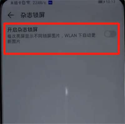 3.将开启杂志锁屏的开关关闭,这样每次亮屏就不会显示杂志锁屏图片了。