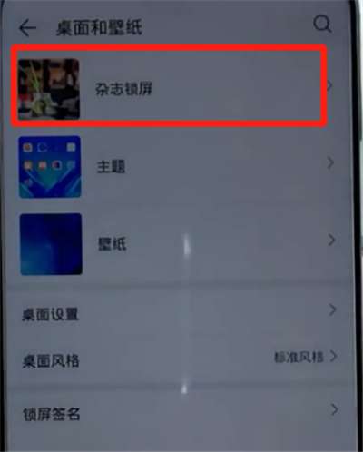 2.找到桌面和壁纸,找到杂志锁屏选项,