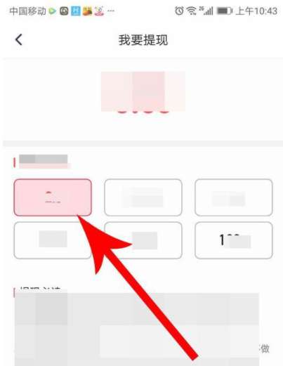 4.打开“提现”界面后,先选择提现金额,再点击界面底部的“提现”按钮,