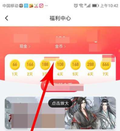 1.打开腾讯新闻极速版的“福利中心”页面,点击界面顶部的“金币”,