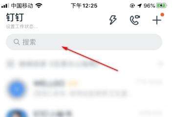 1、打开钉钉APP,进入首页,点击上方的搜索框,位置如下图所示: